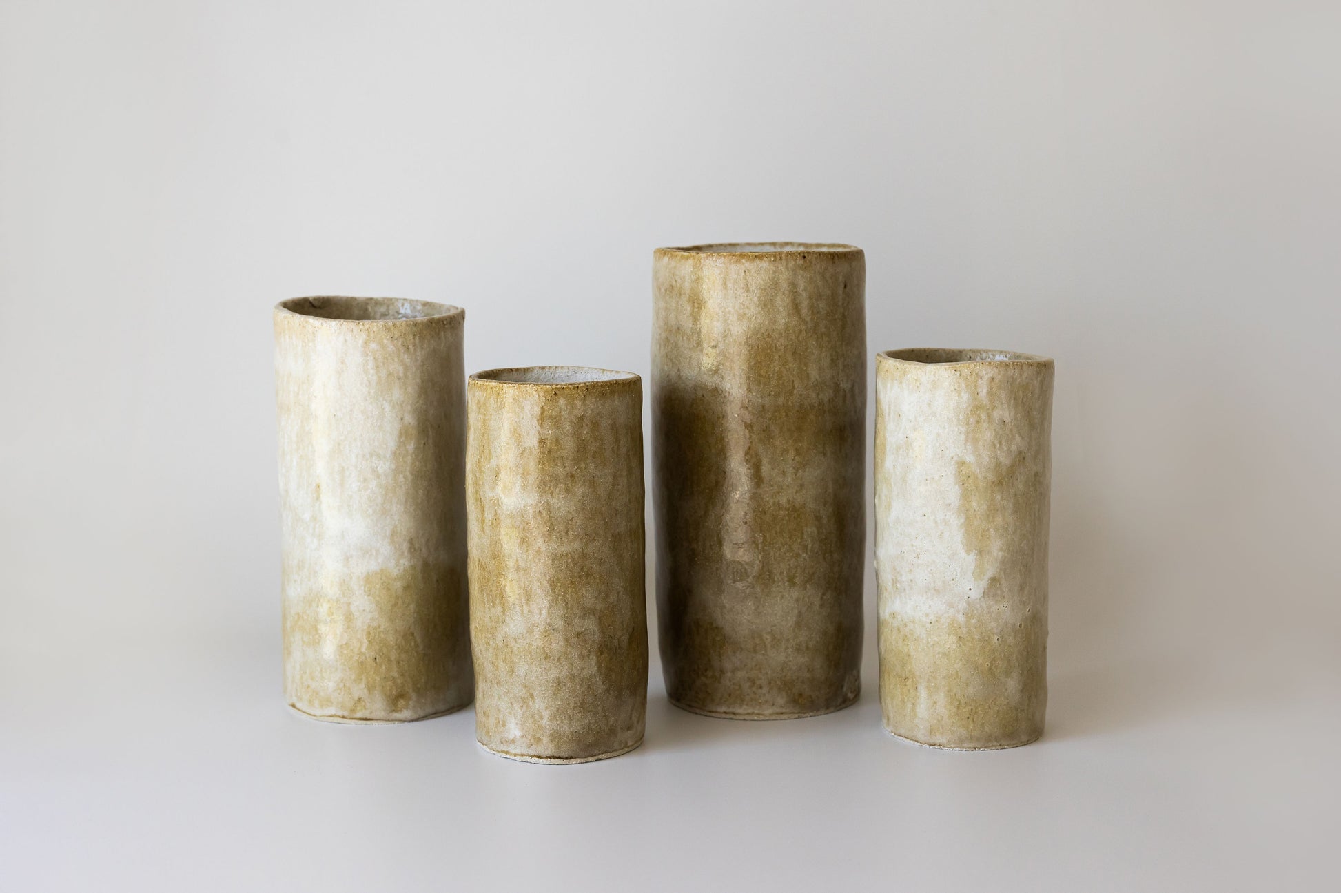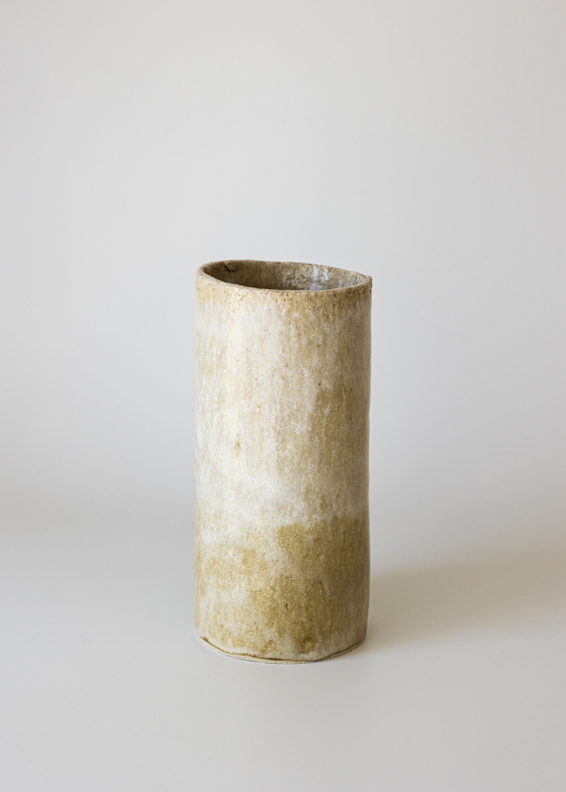 Light glazed stoneware with rough finished state internally.